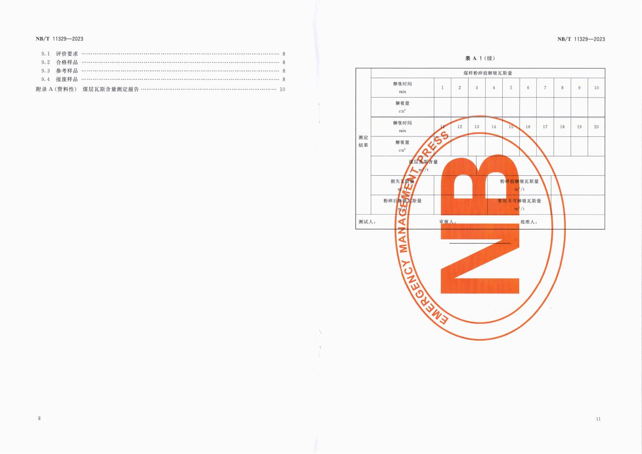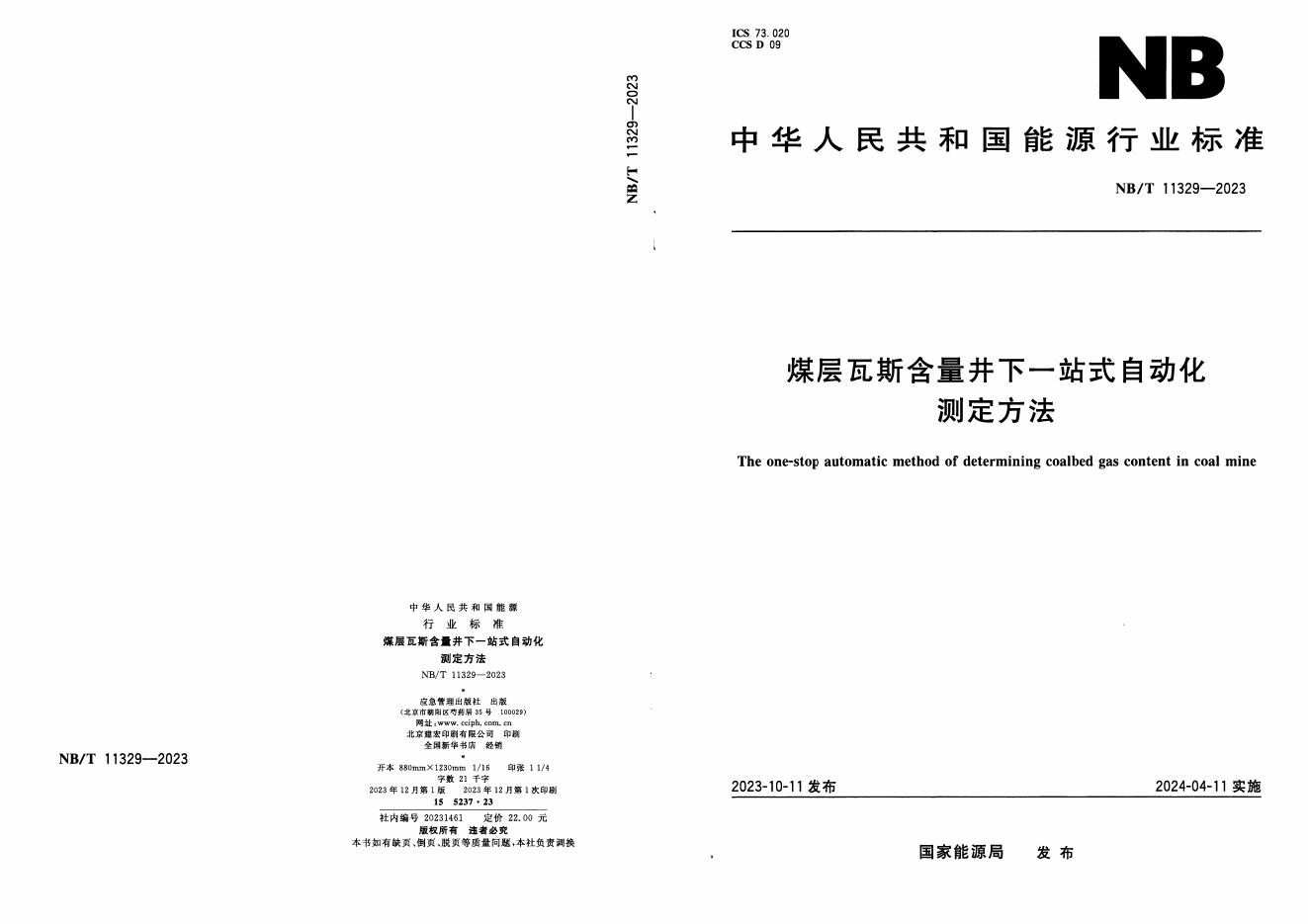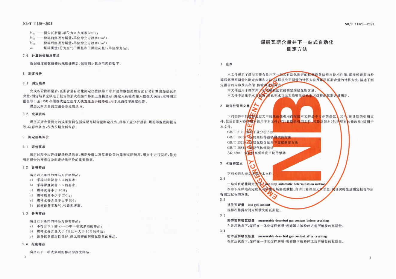 NB/T 11329-2023 煤层瓦斯含量井下一站式自动化测定方法
