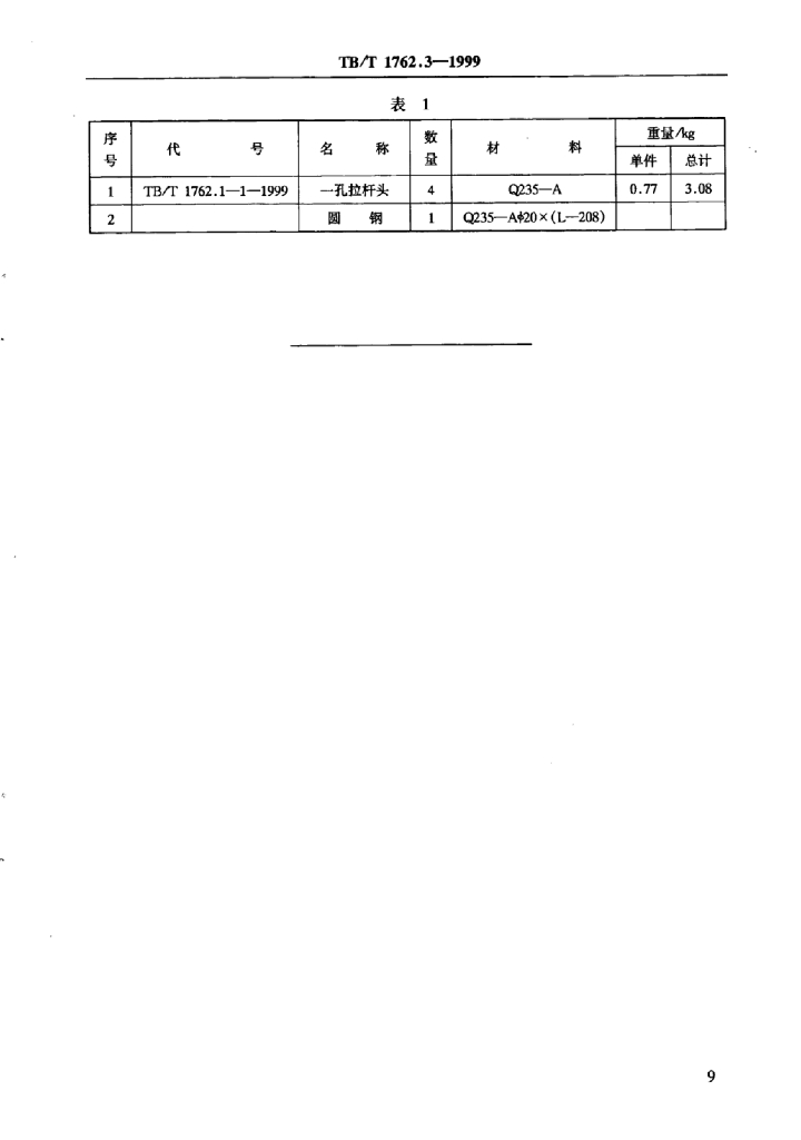 TB/T 1762.3-1999 货车用上拉杆IV型、V型
