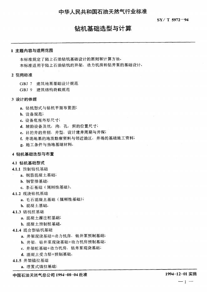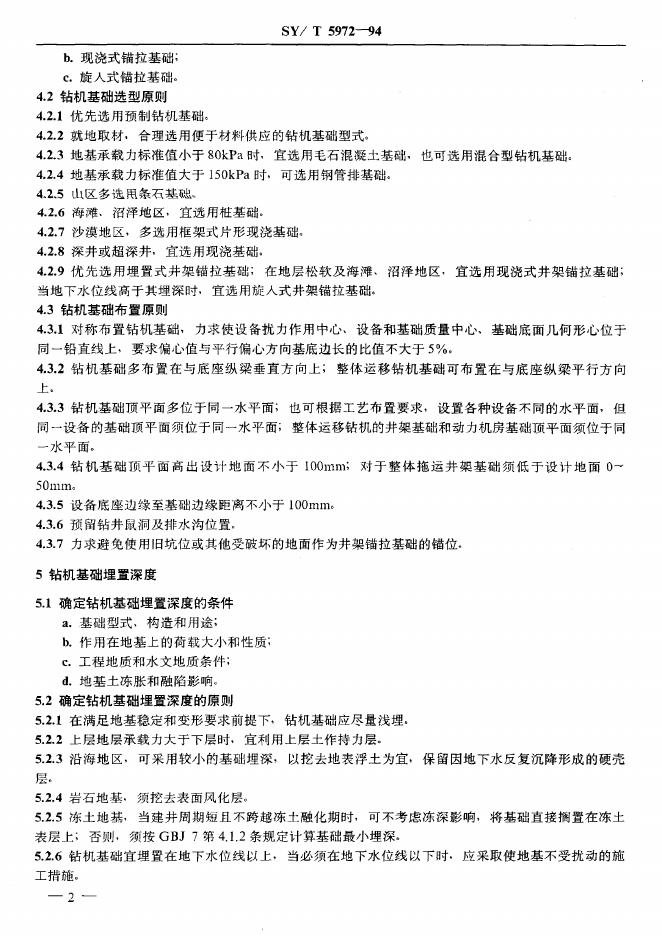 SY/T 5972-1994 钻机基础选型与计算