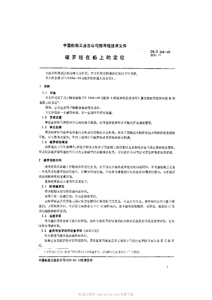 CB/Z 206-1983 磁罗经在船上的定位