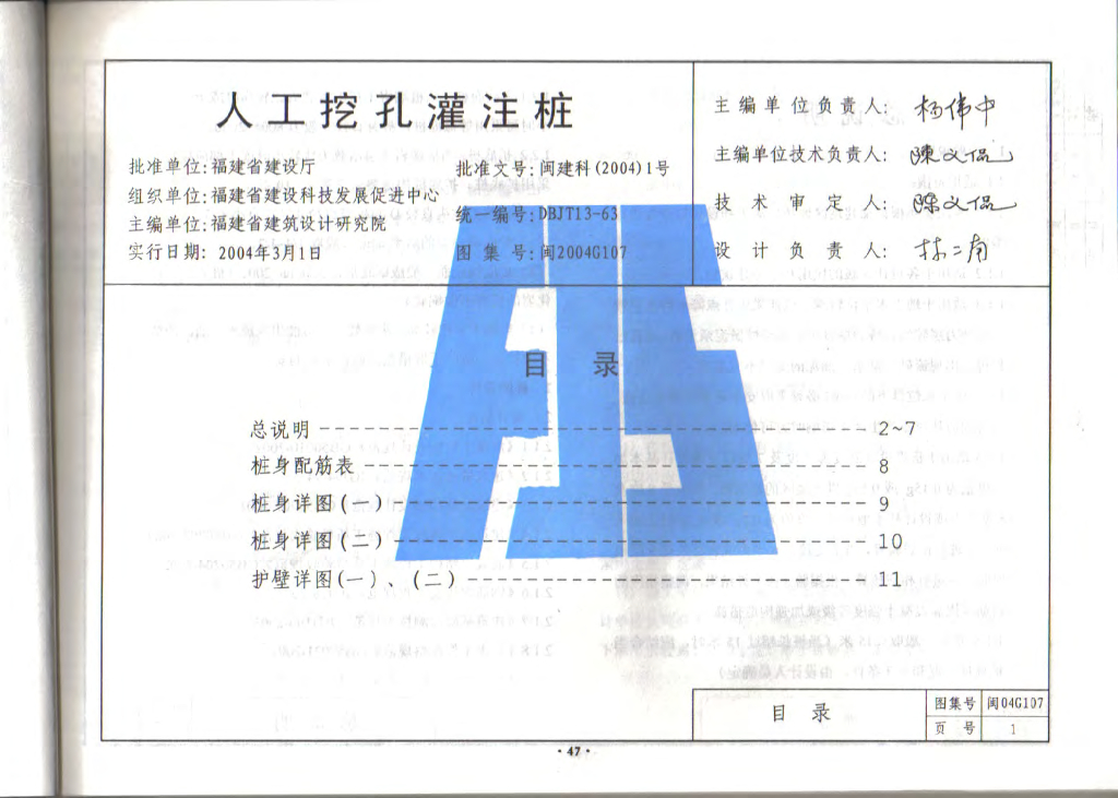 闽2004G107 人工挖孔灌注桩图集(福建省DBJT13-63)