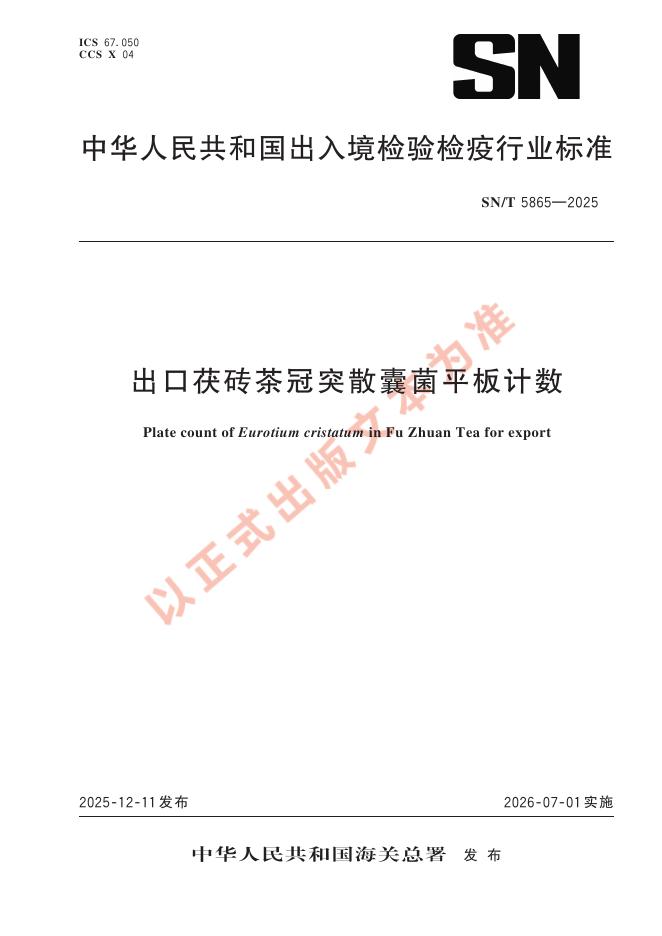 SN/T 5865-2025 出口茯砖茶冠突散囊菌平板计数