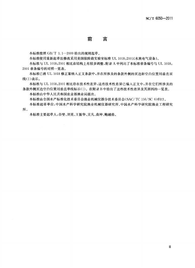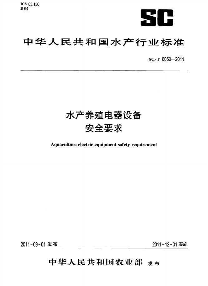 SC/T 6050-2011 水产养殖电器设备安全要求
