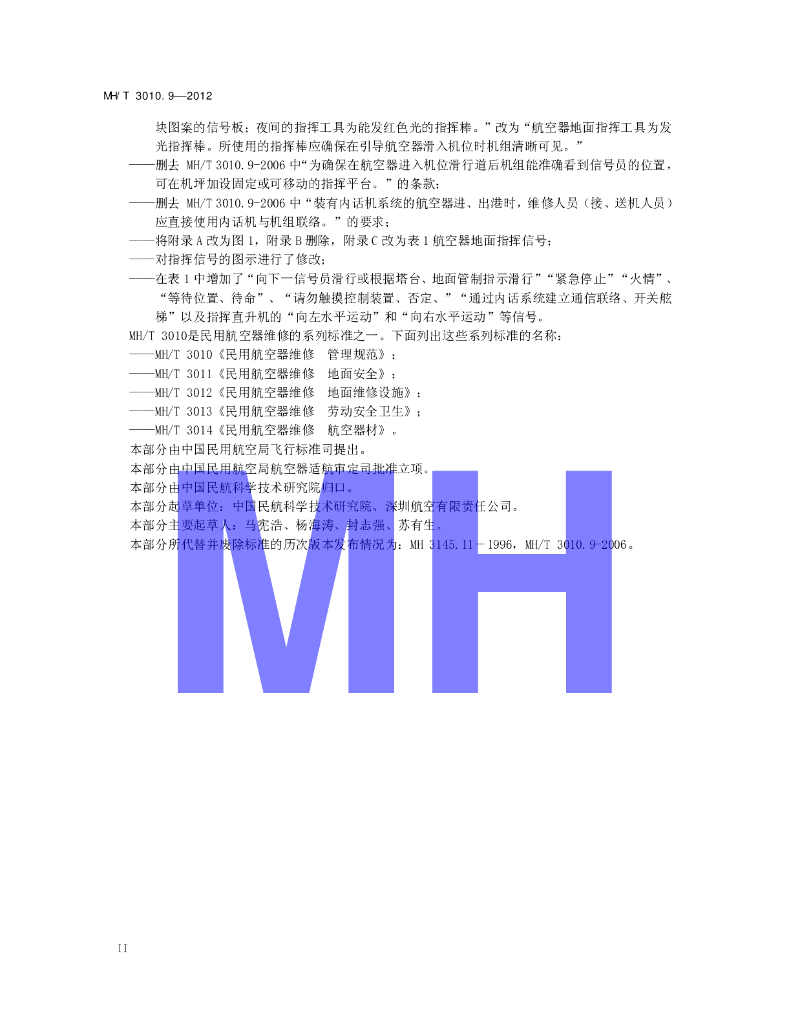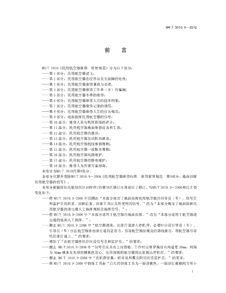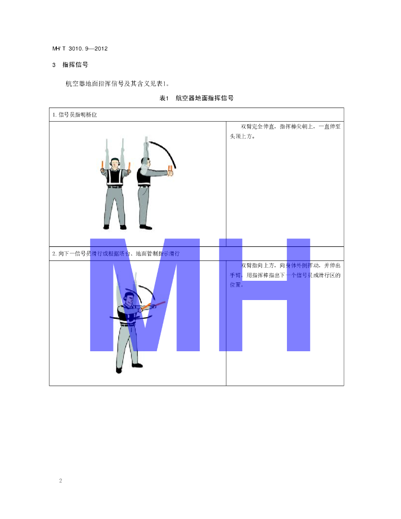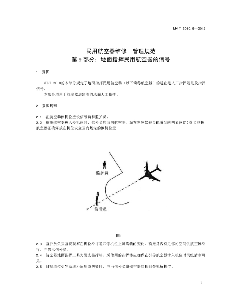 MH/T 3010.9-2012 民用航空器维修 管理规范 第9部分:地面指挥民用航空器的信号
