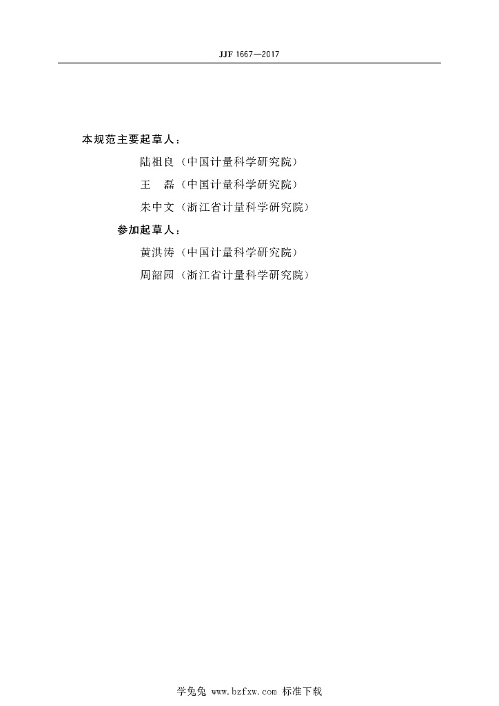 陆祖良(中国计量科学研究院)、王磊(中国计量科学研究院)、朱中文(浙江省计量科学研究院)、黄洪涛(中国计量科学研究院)、周韶园(浙江省计量科学研究院)
