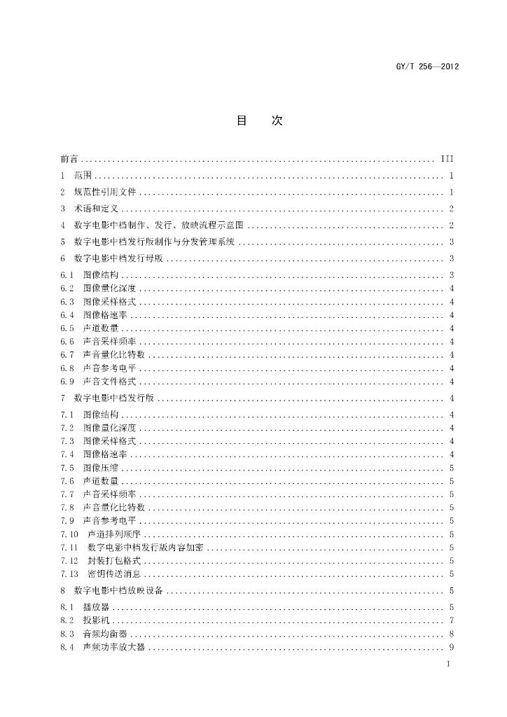 GY/T 256-2012 数字电影中档放映系统技术要求和测量方法