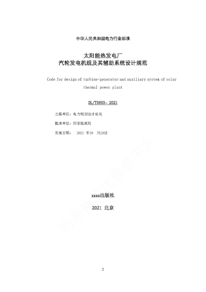 DL/T 5603-2021 太阳能热发电厂汽轮发电机组及其辅助系统设计规范
