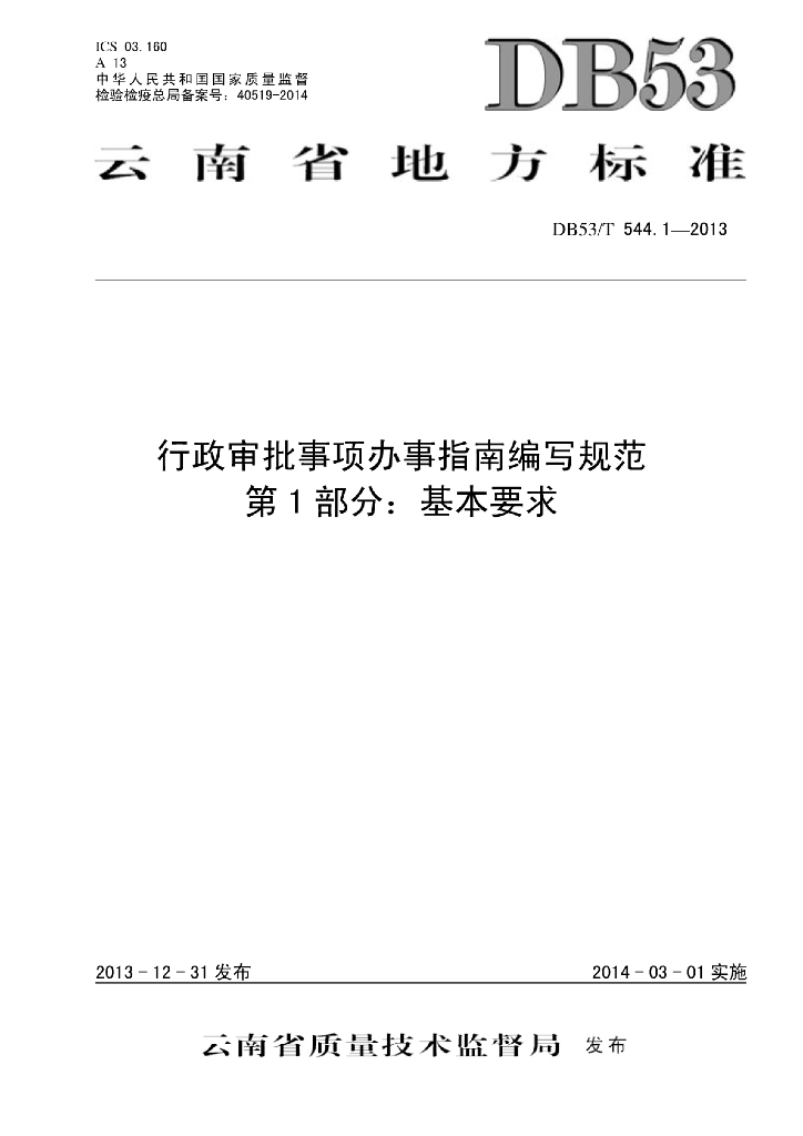 DB53/T 544.1-2013 行政审批事项办事指南编写规范 第1部分:基本要求