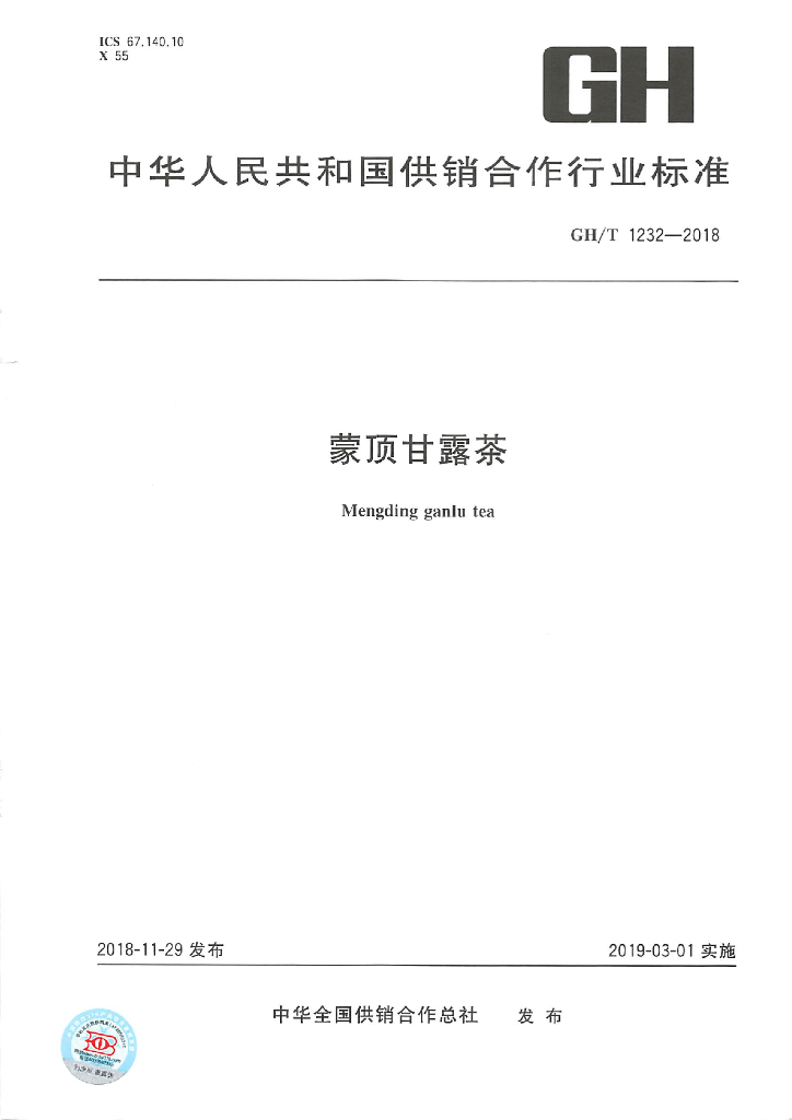 GH/T 1232-2018 蒙顶甘露茶