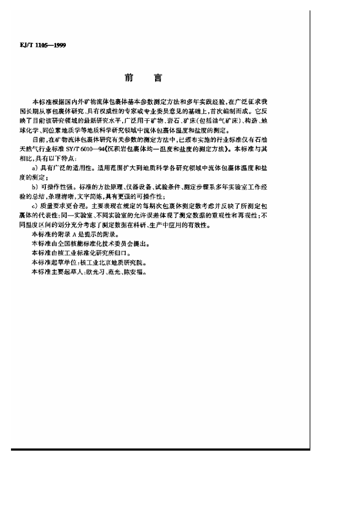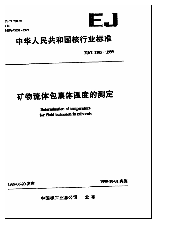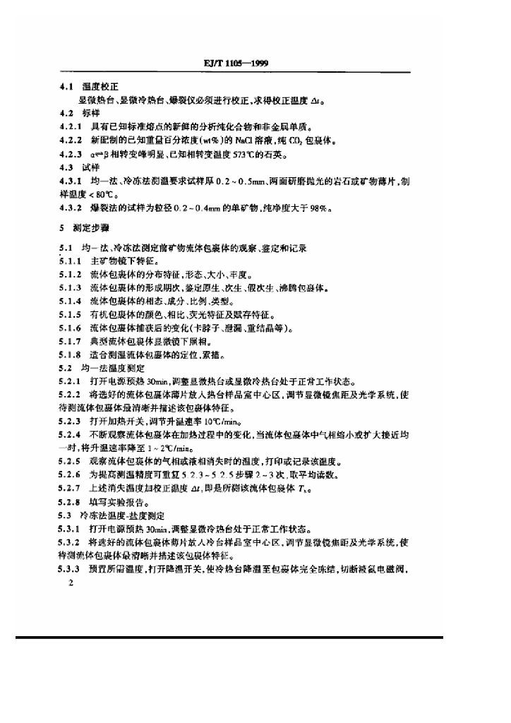 EJ/T 1105-1999 矿物流体包裹体温度的测定