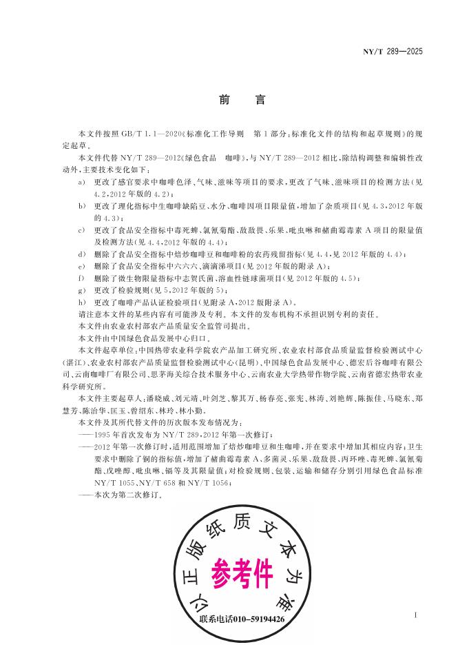 - 代替标准:NY/T 289-2012