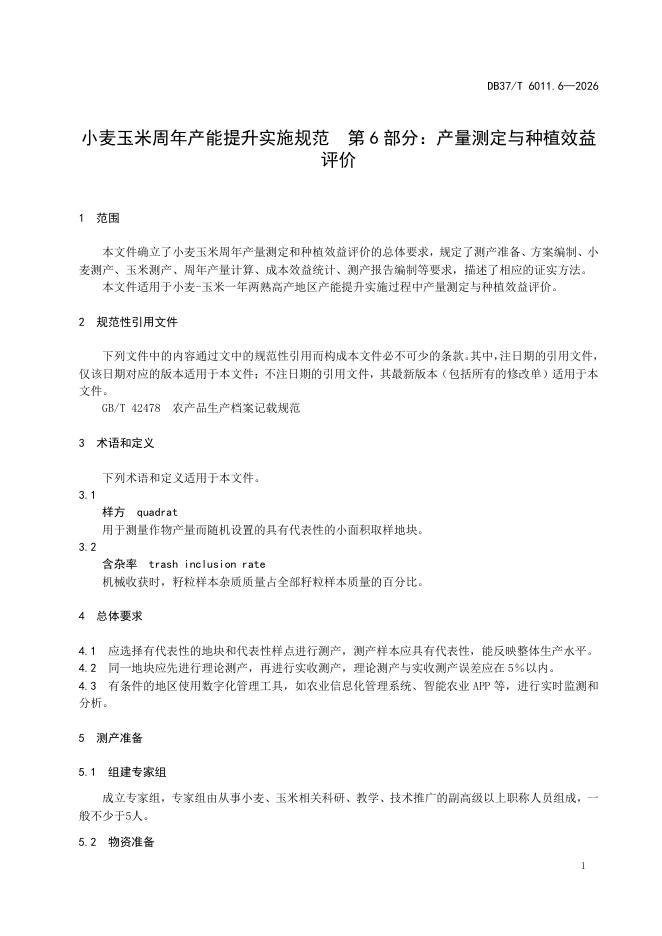 DB37/T 6011.6-2025 小麦玉米周年产能提升实施规范 第6部分:产量测定与种植效益评价
