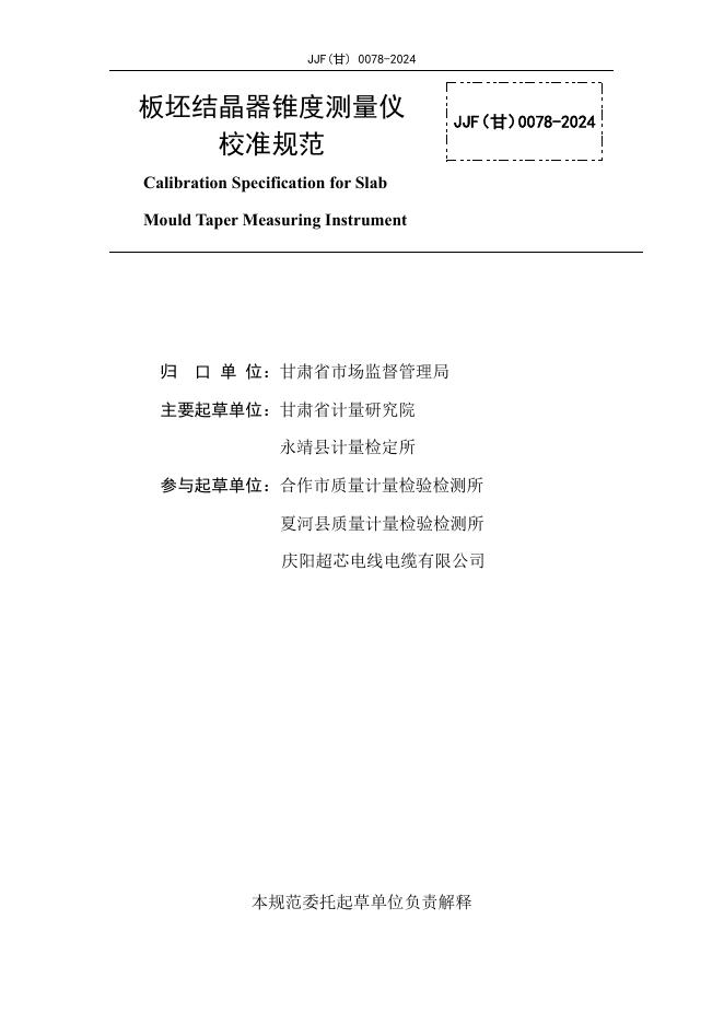 JJF(甘)0078-2024 板坯结晶器锥度测量仪
