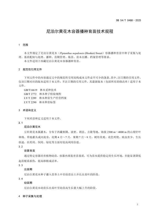 DB54/T 0488-2025 尼泊尔黄花木容器播种育苗技术规程