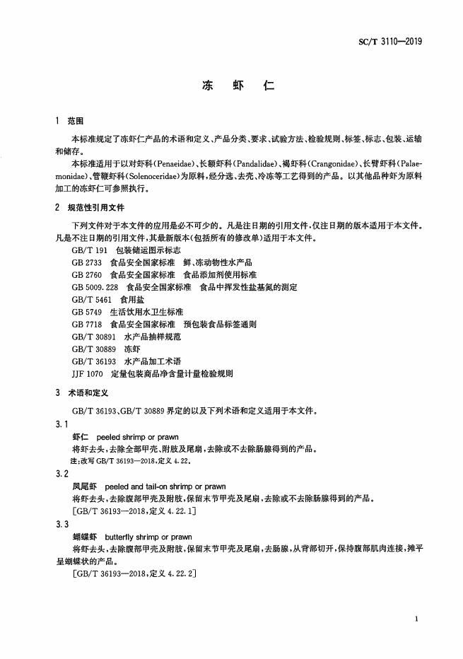 SC/T 3110-2019 冻虾仁