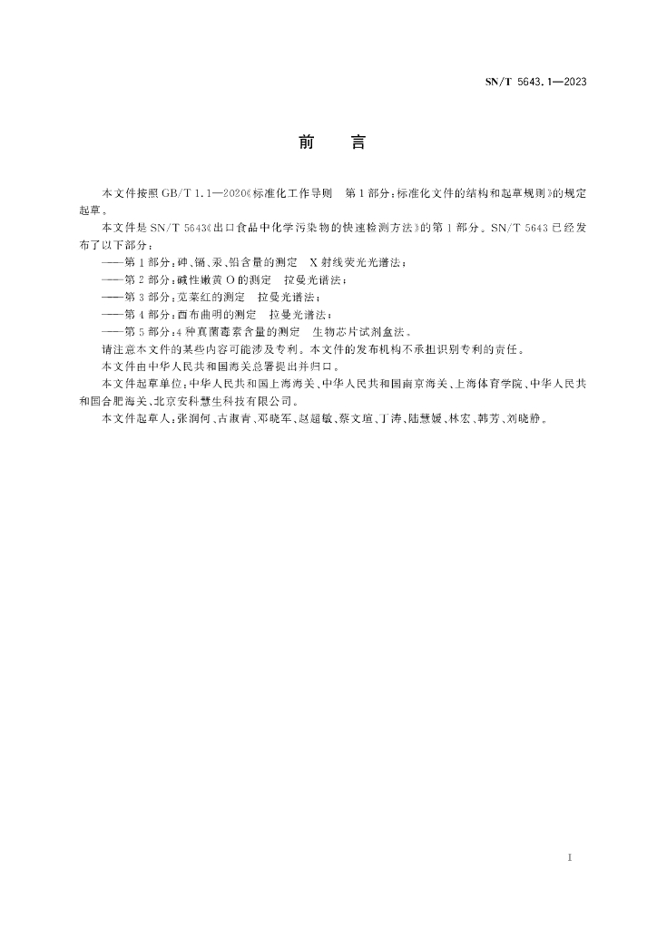 SN/T 5643.1-2023 出口食品中化学污染物的快速检测方法 第1部分:砷、镉、汞、铅含量的测定 X射线荧光光谱法