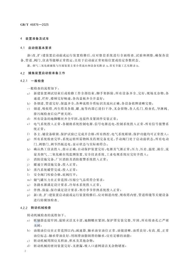 GB/T 46876-2025 烟气二氧化碳捕集与压缩装置运行管理规范
