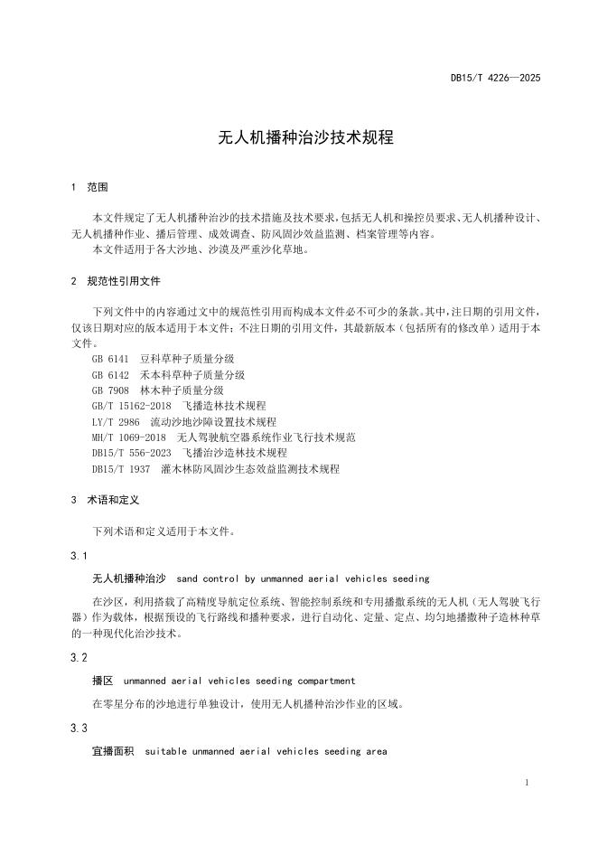 DB15/T 4226-2025 无人机播种治沙技术规程