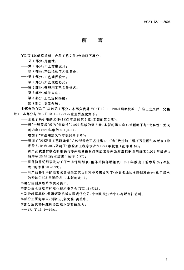 YC/T 12.1-2006 烟草机械 产品工艺文件 第1部分完整