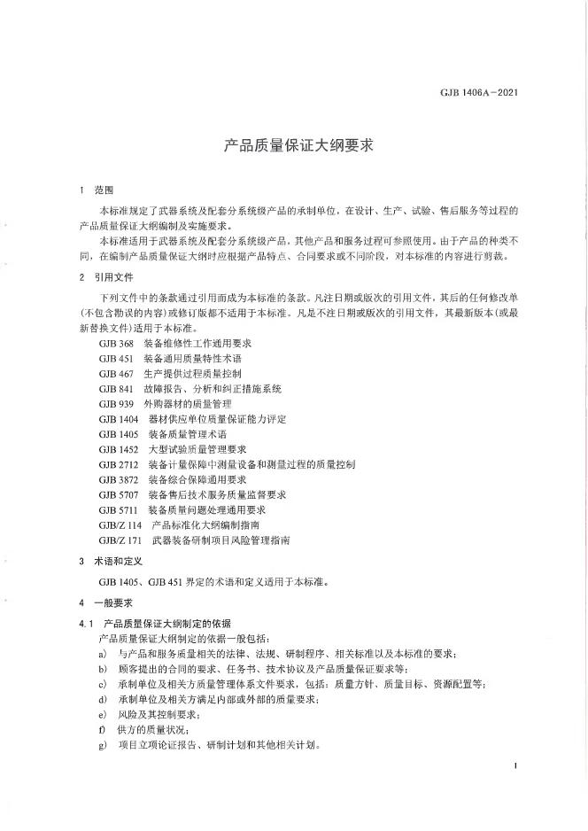 GJB 1406A-2021 产品质量保证大纲要求