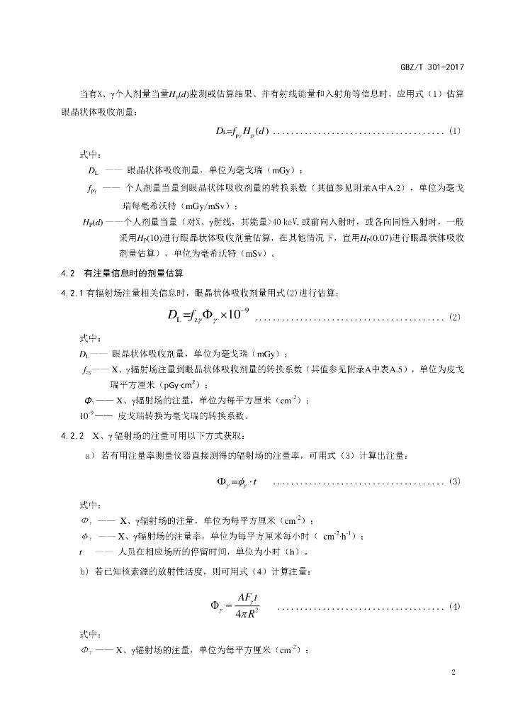 GBZ/T 301-2017 电离辐射所致眼晶状体剂量估算方法