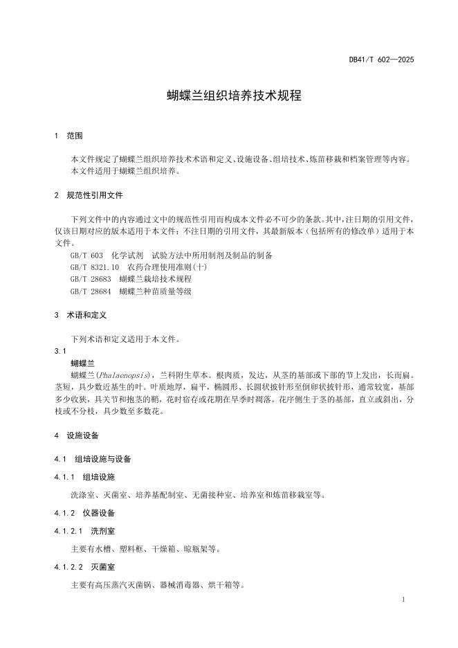 DB41/T 602-2025 蝴蝶兰组织培养技术规程