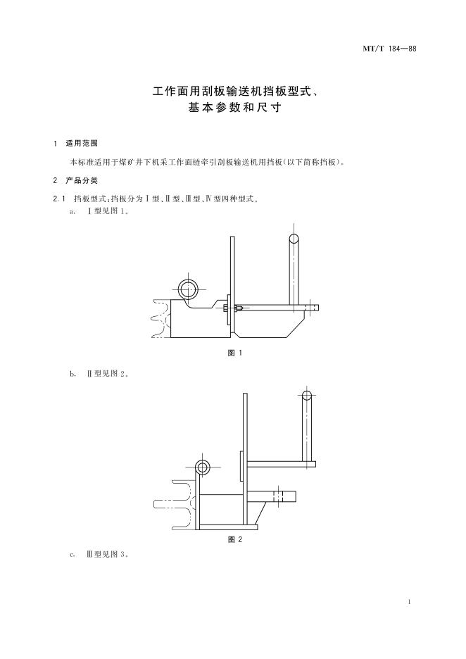 MT/T 184-1988 工作面用刮板输送机挡板型式、基本参数和尺寸