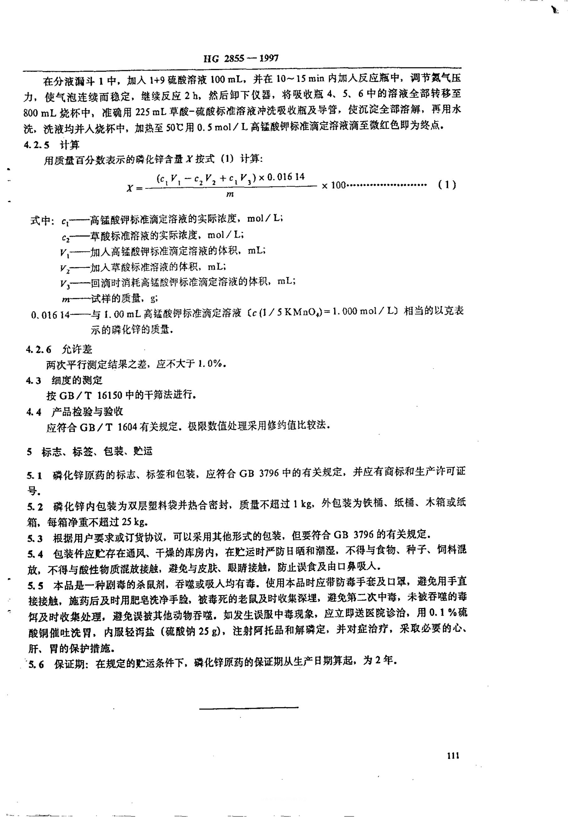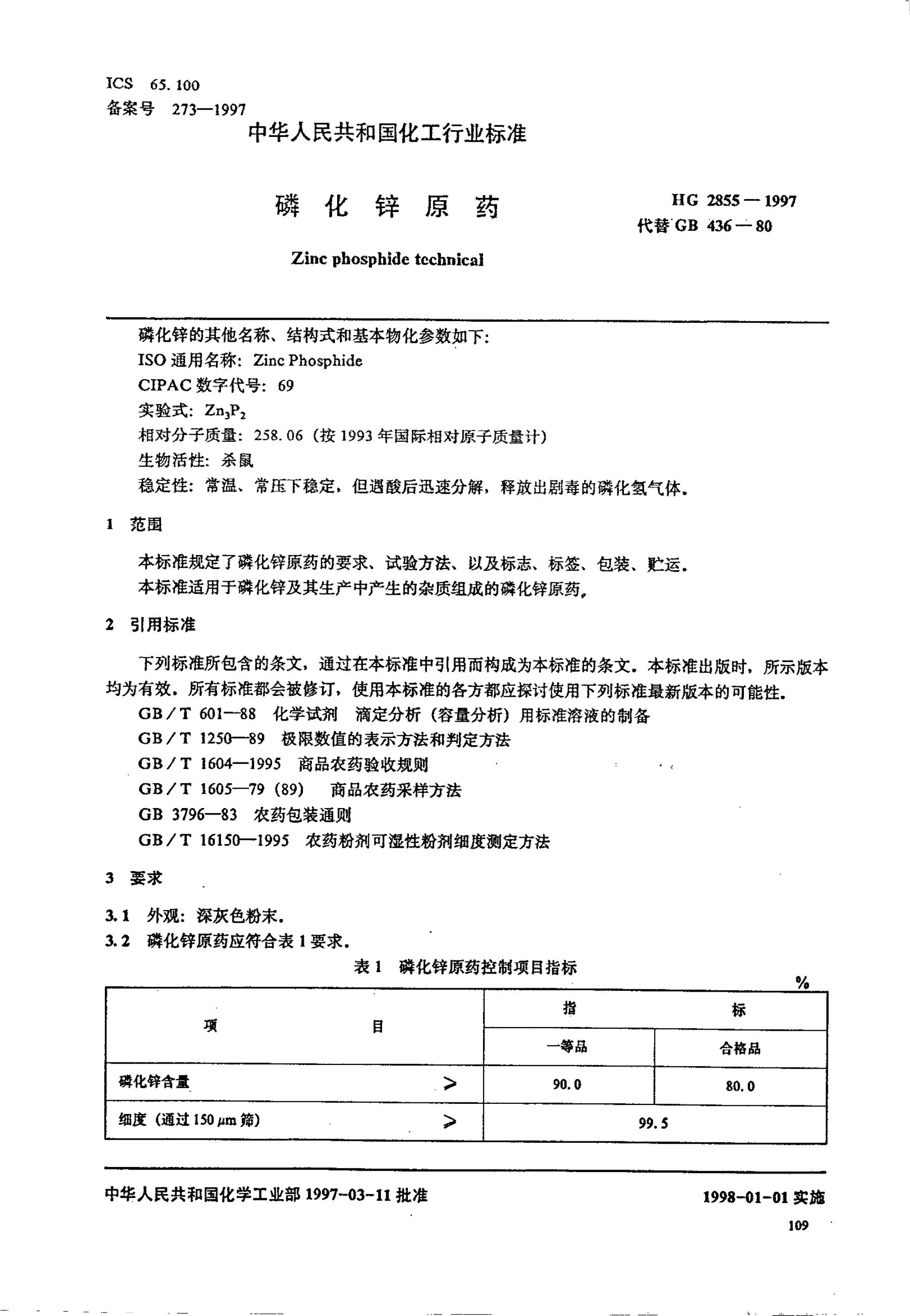 HG/T 2855-1997 磷化锌原药