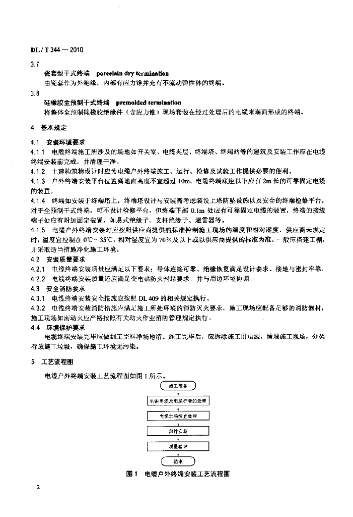 DL/T 344-2010 额定电压66kV~220kV交联聚乙烯绝缘电力电缆户外终端安装规程