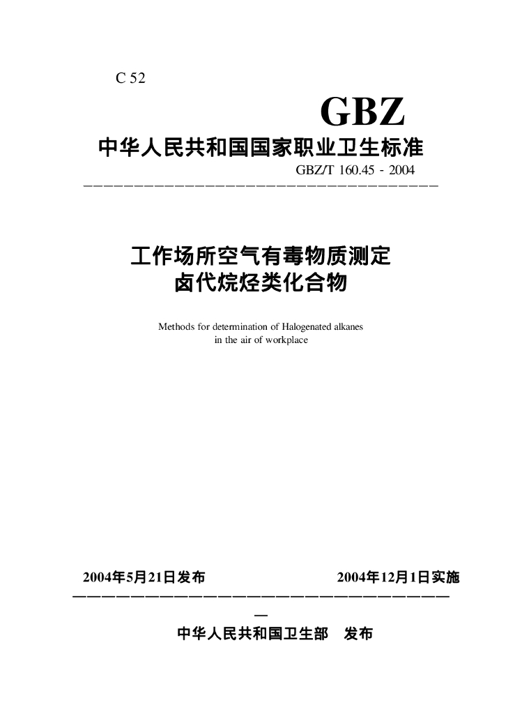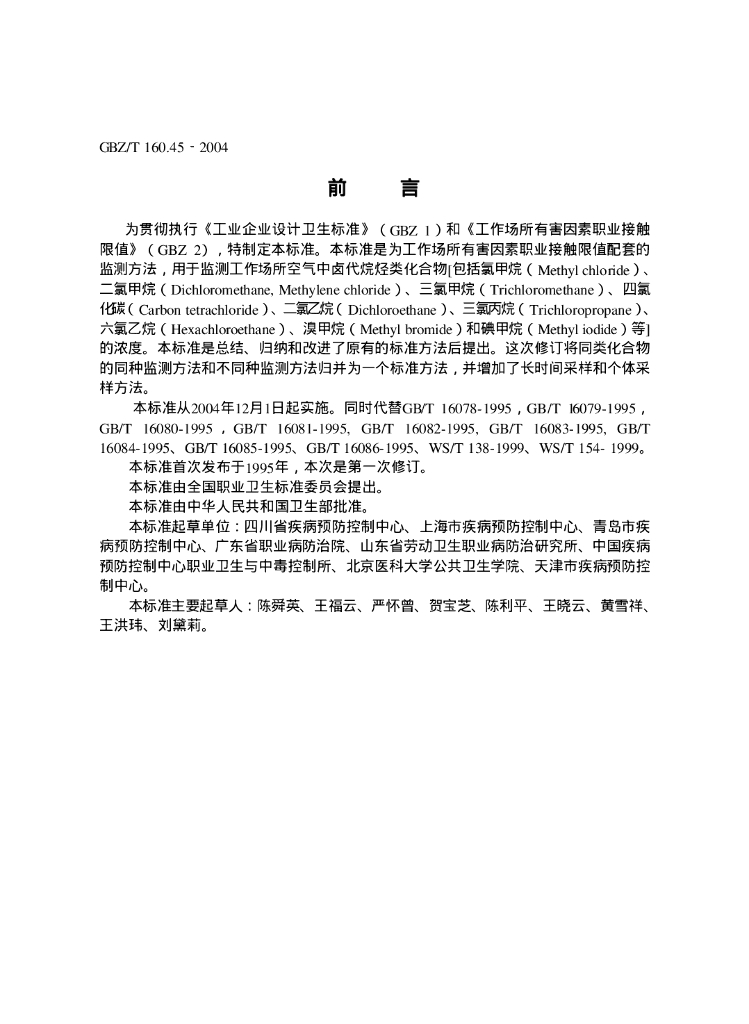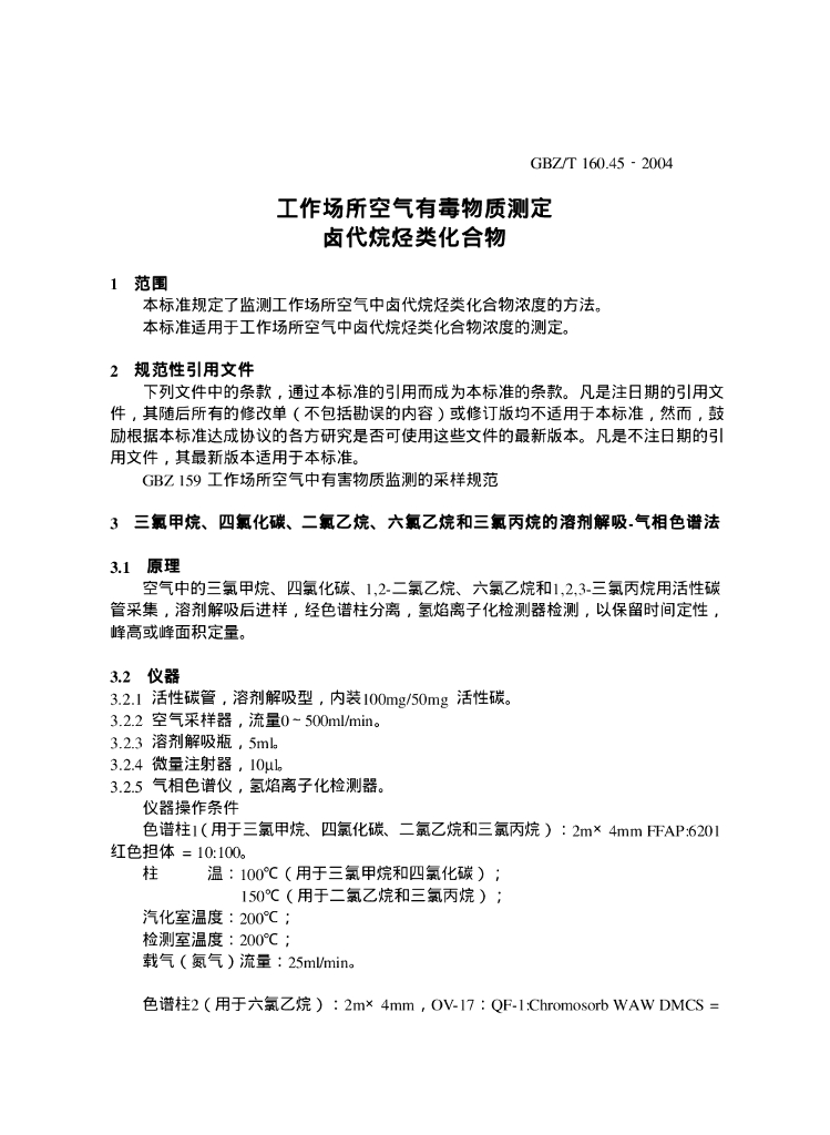 GBZ/T 160.45-2004 工作场所空气有毒物质测定 卤代烷烃类化合物