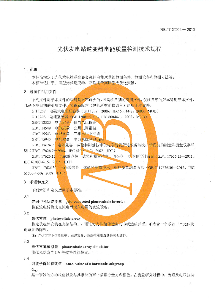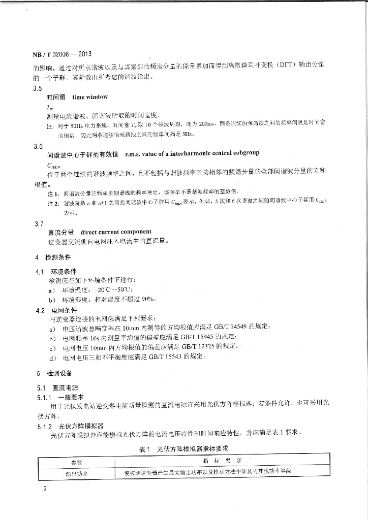 NB/T 32008-2013 光伏发电站逆变器电能质量检测技术规程