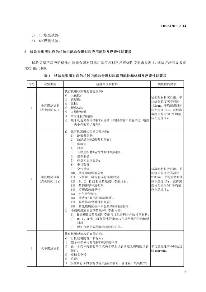 HB 5470-2014(2017) 民用飞机机舱内部非金属材料燃烧性能要求