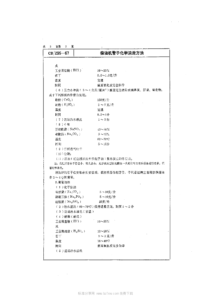 CB/Z 95-1967 柴油机管子化学清洗方法