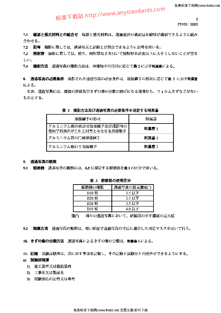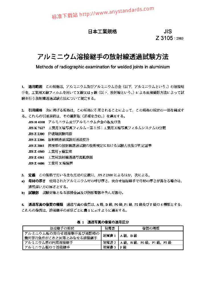 JIS Z3105-2003 铝焊接接头X-射线照相检验方法