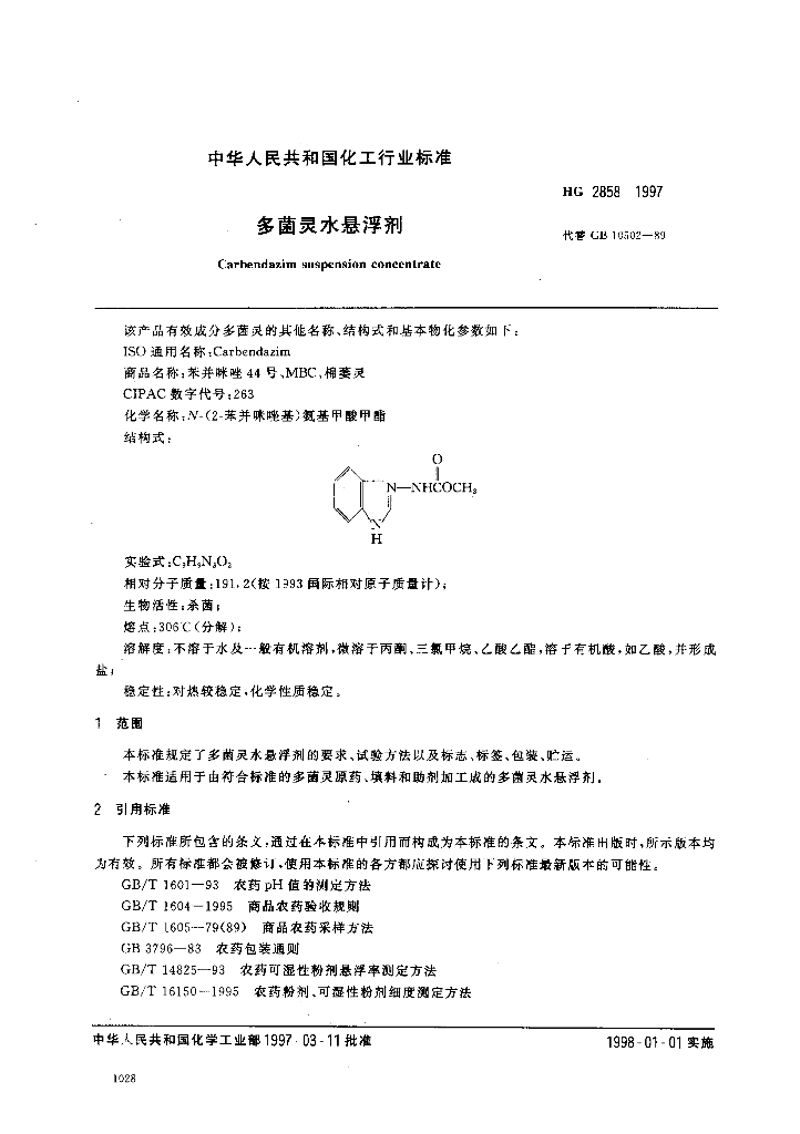 HG 2858-1997 多菌灵水悬浮剂