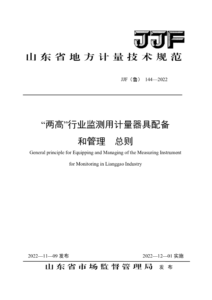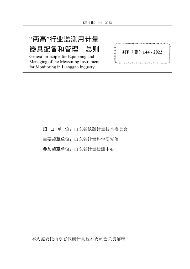 JJF(鲁)144-2022 “两高”行业监测用计量器具配备和管理 总则