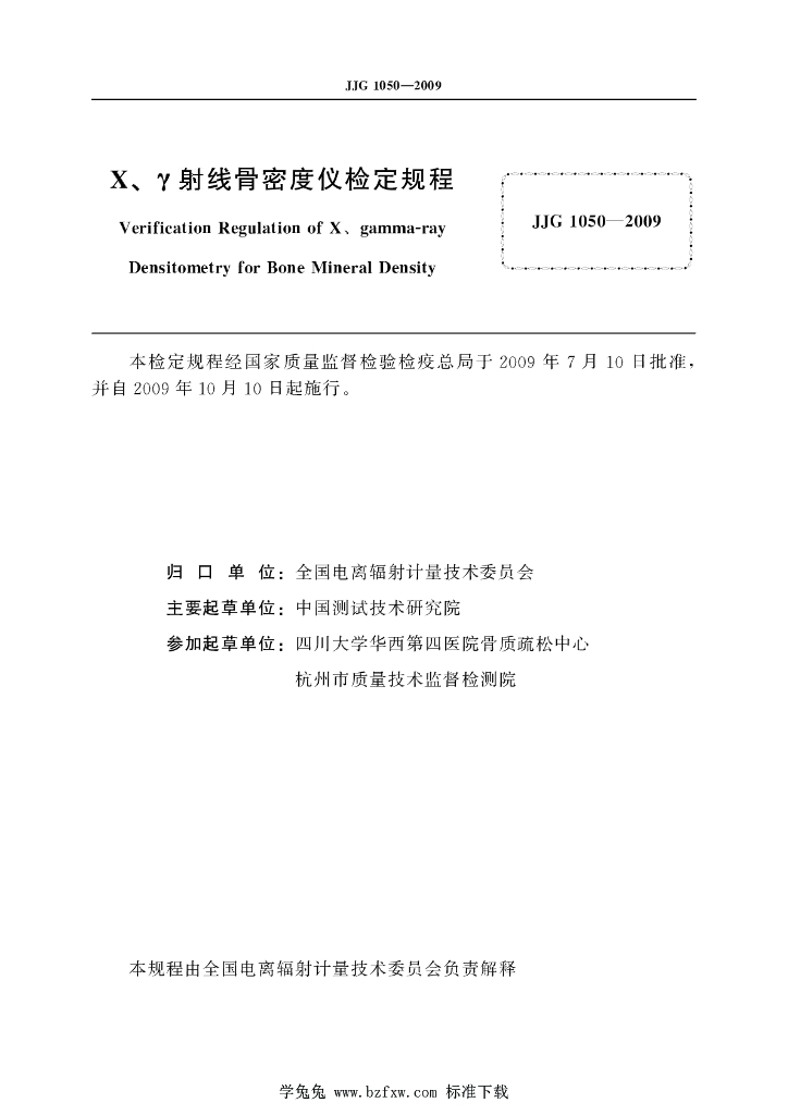 鄢铃(中国测试技术研究院)、杨勇(中国测试技术研究院)、杨定悼(四川大学华西第四医院骨质疏松中心)、黄扬(中国测试技术研究院)、王雄飞(杭州市质量技术监督检测院)