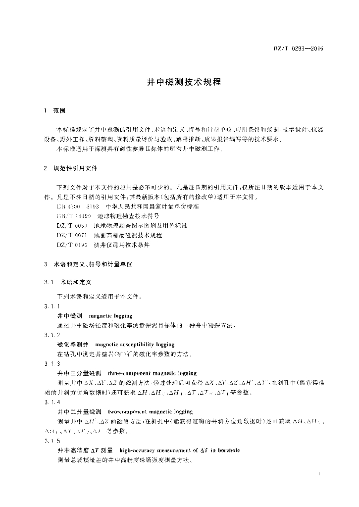 DZ/T 0293-2016 井中磁测技术规程