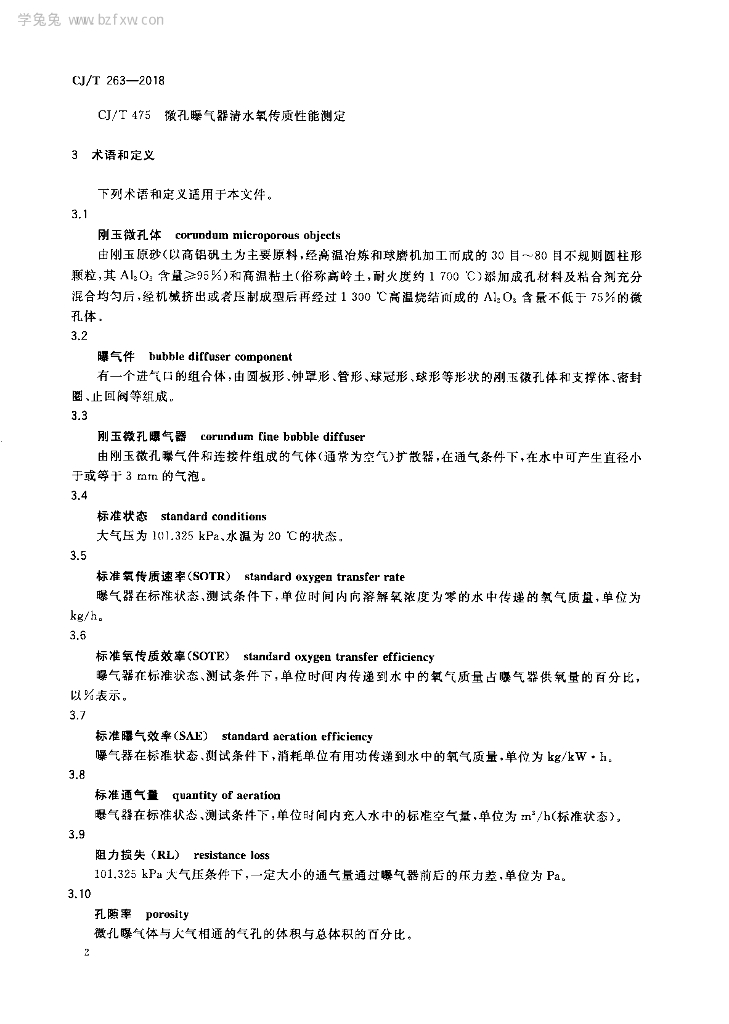 CJ/T 263-2018 水处理用刚玉微孔曝气器