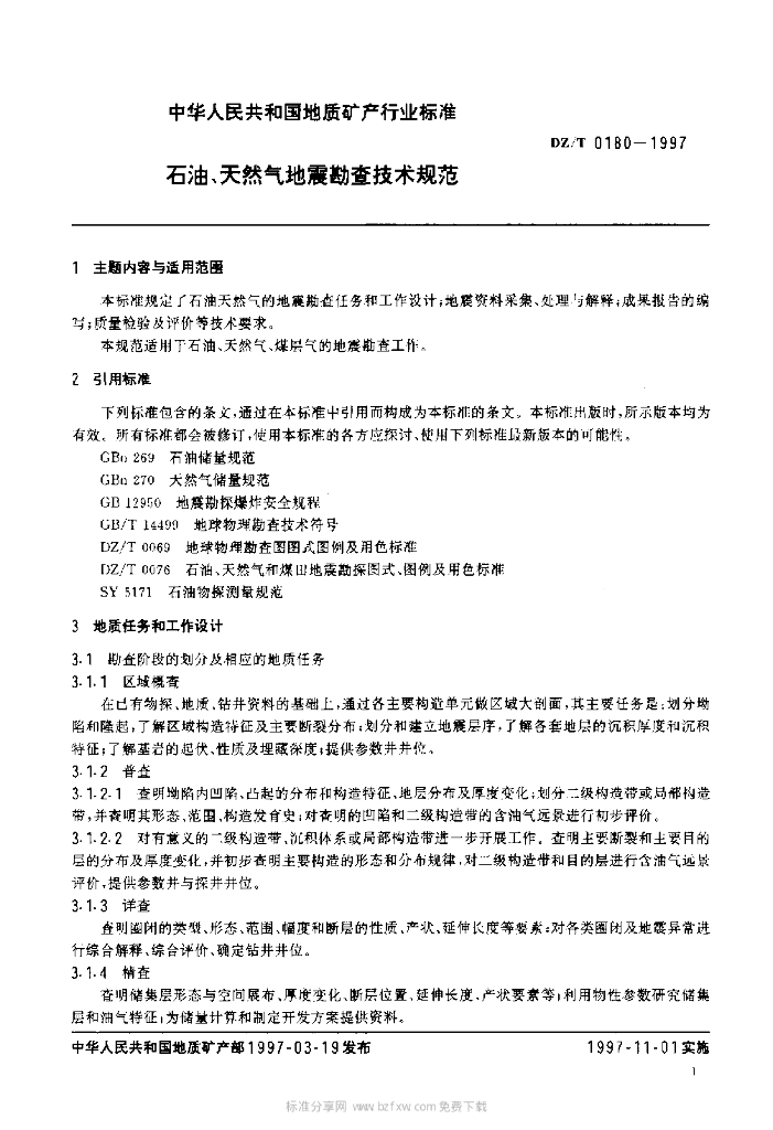 DZ/T 0180-1997 石油、天然气地震勘查技术规范