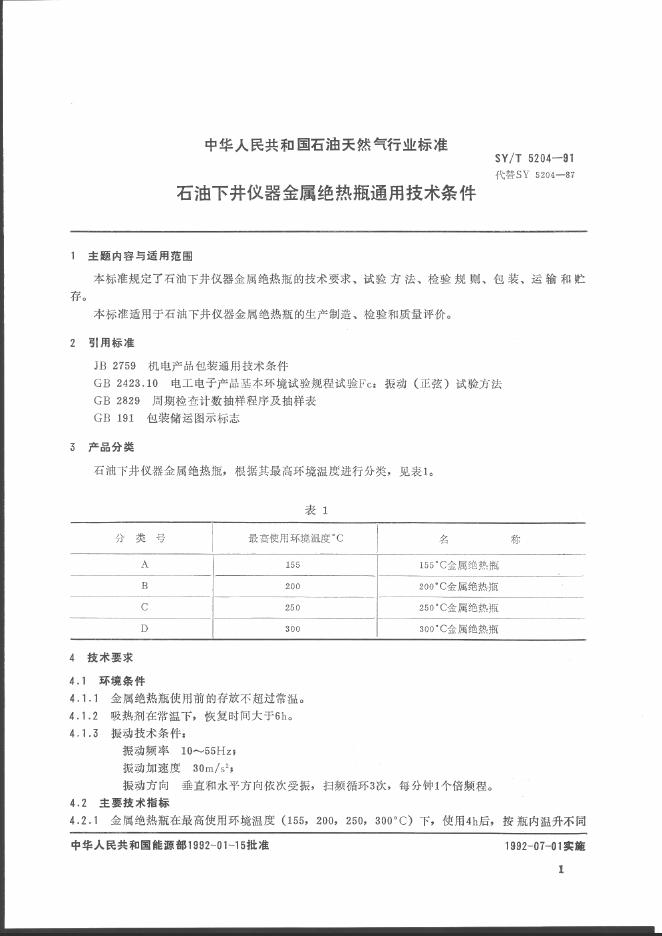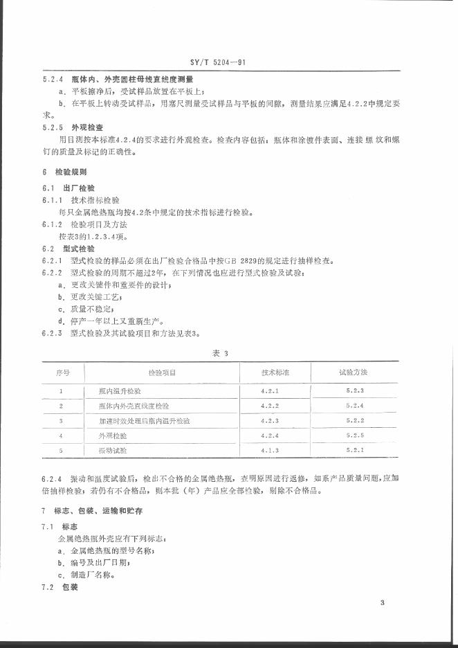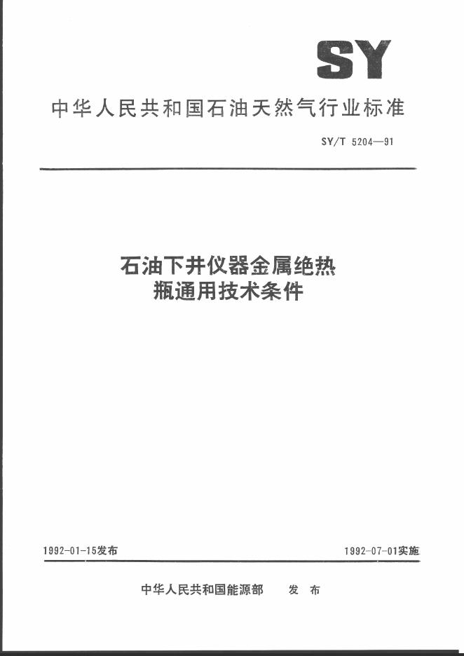 SY/T 5204-1991 石油下井仪器金属绝热瓶通用技术条件