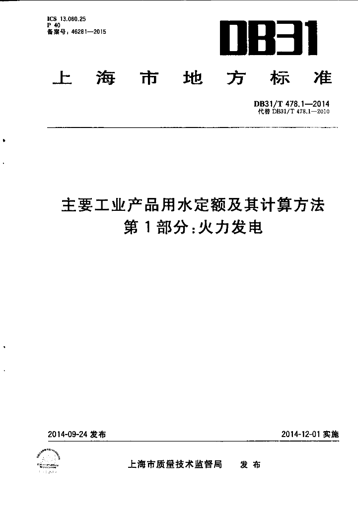 上海市供水管理处、上海市能源标准化技术委员会