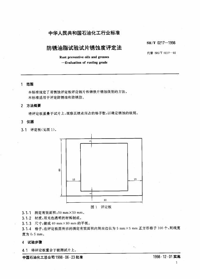 SH/T 0217-1992 防锈油脂试验试片锈蚀度试验法