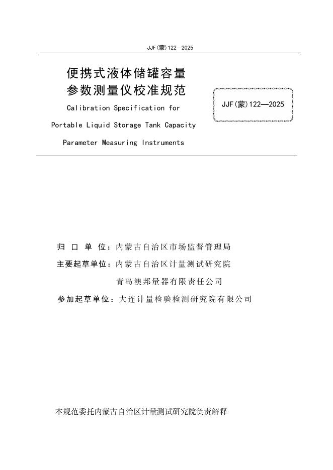 JJF(蒙)122-2025 便携式液体储罐容量参数测量仪校准规范