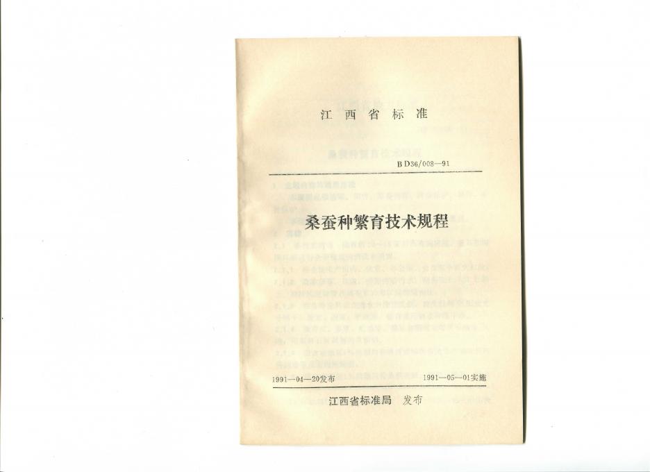 DB36/ 008-1991 桑蚕种繁育技术规程