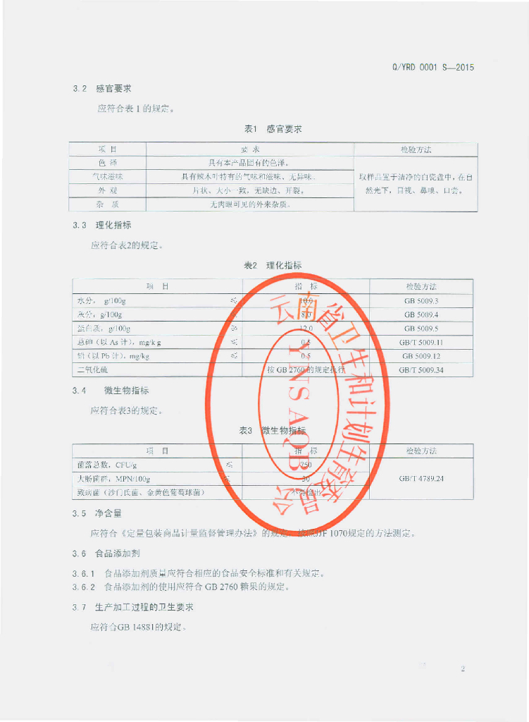 Q/YRD 0001S-2015 云南荣德辣木生物科技发展有限公司 辣木叶片(压片糖果)