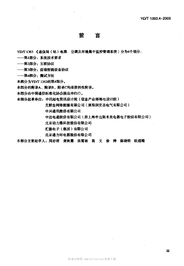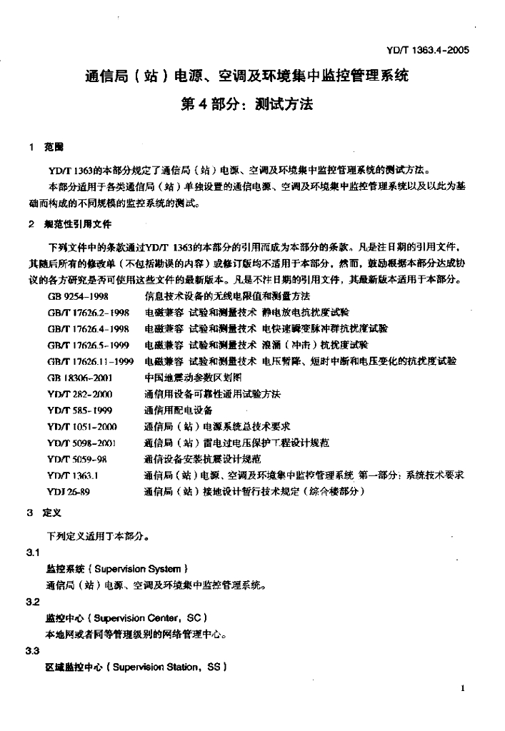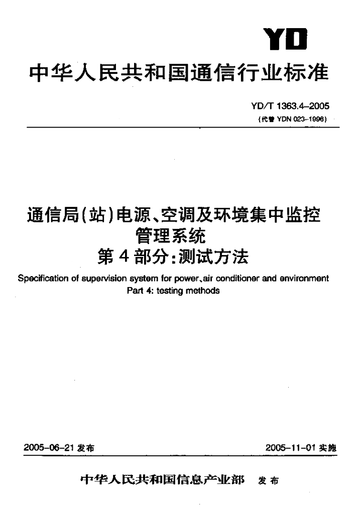 YD/T 1363.4-2005 通信局(站)电源、空调及环境集中监控管理系统 第4部分:测试方法