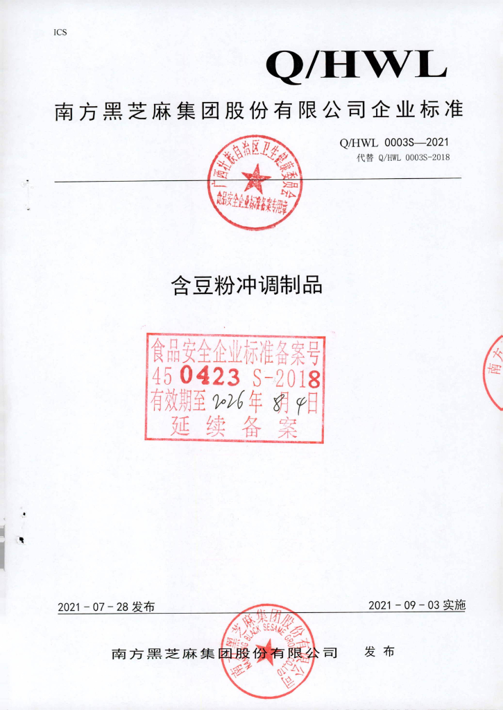 Q/HWL 0003S-2021 含豆粉冲调制品