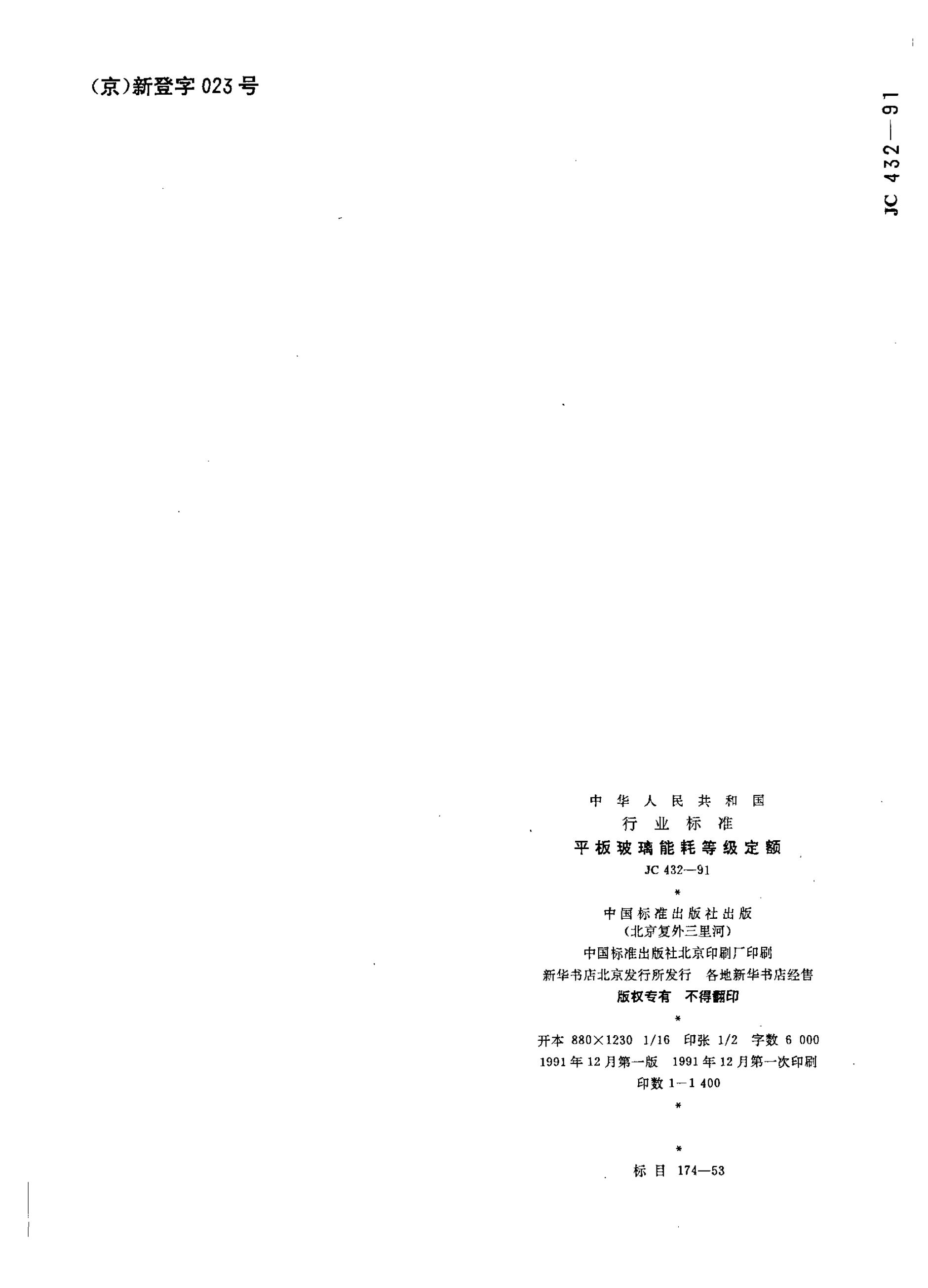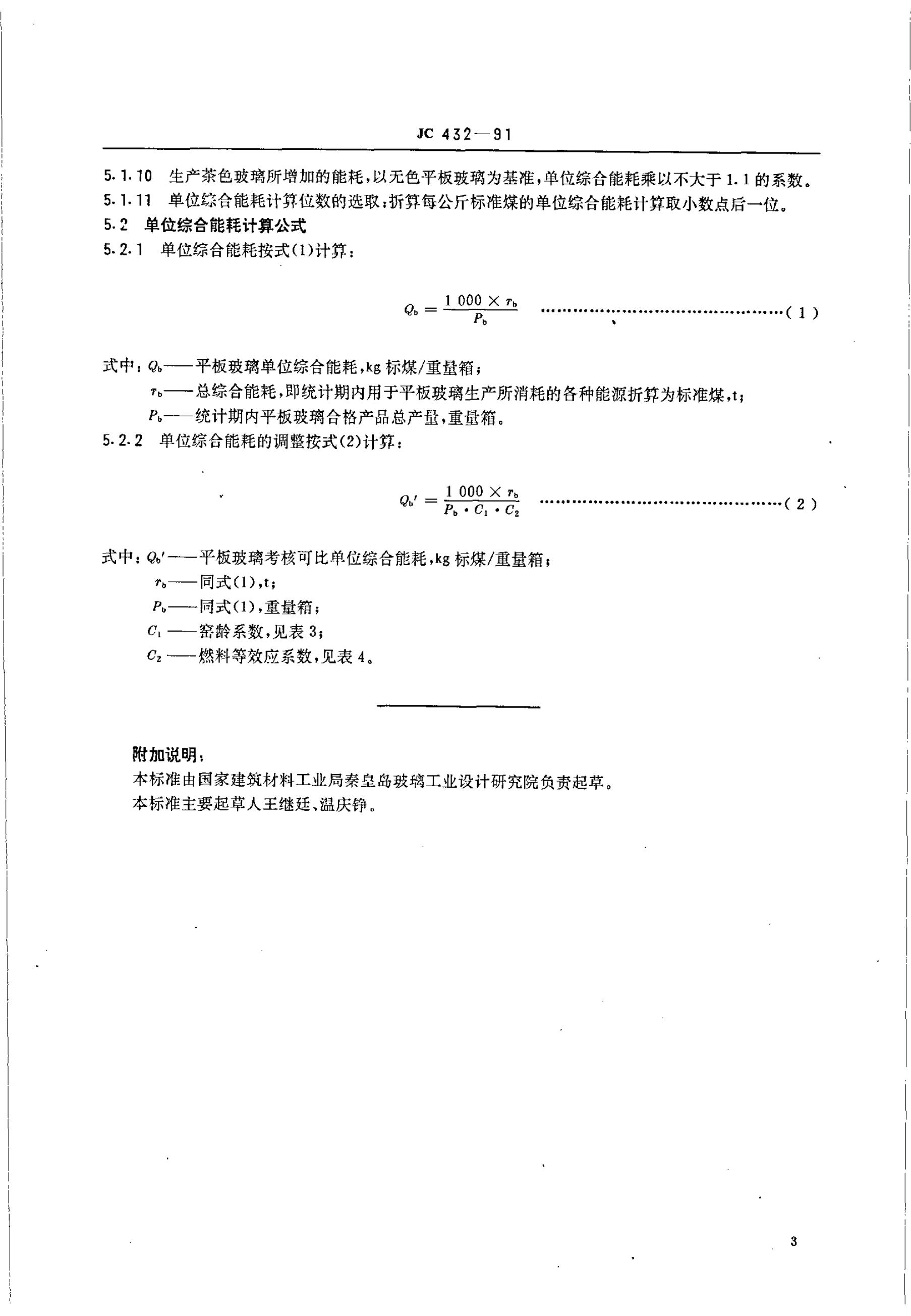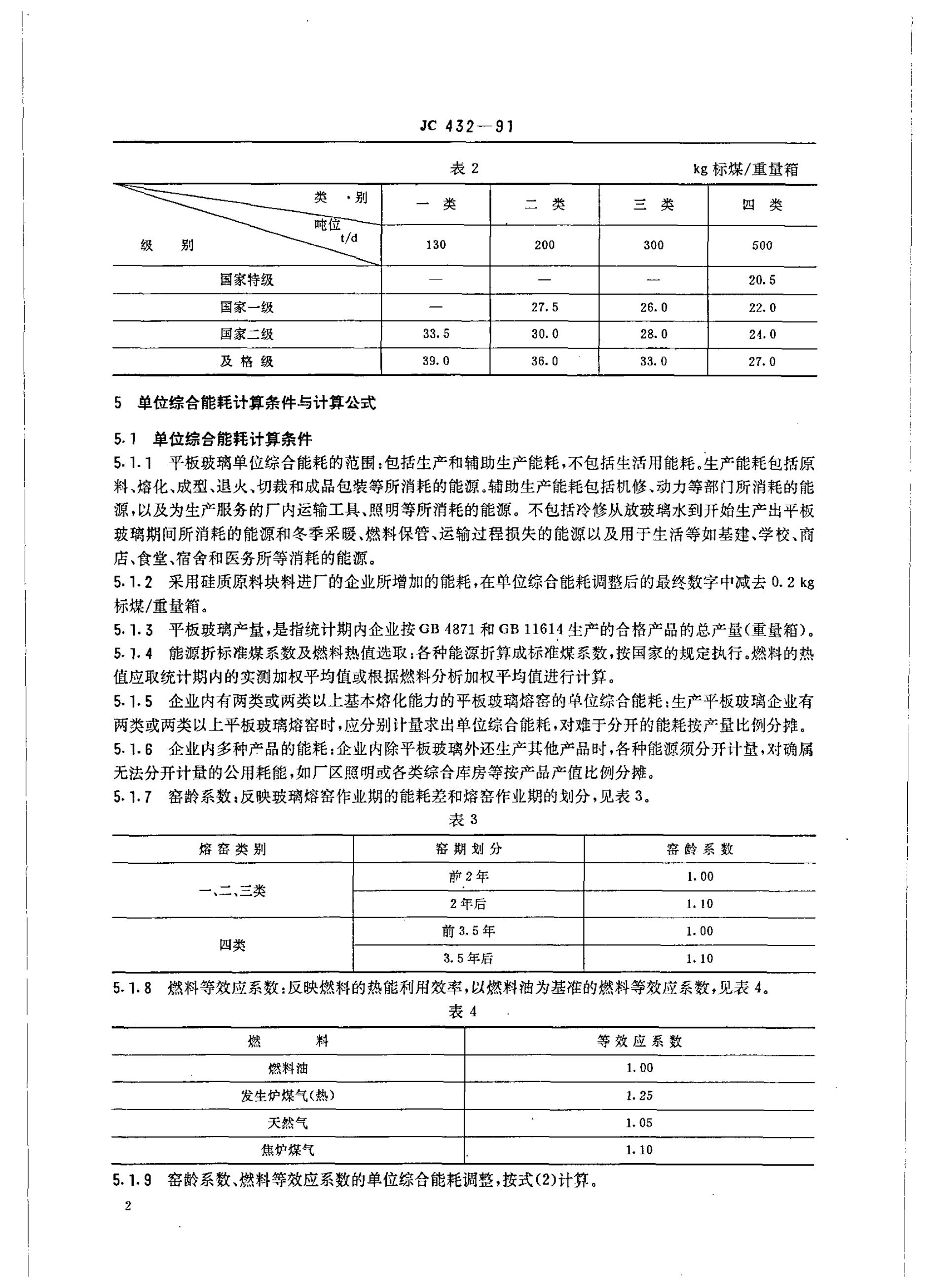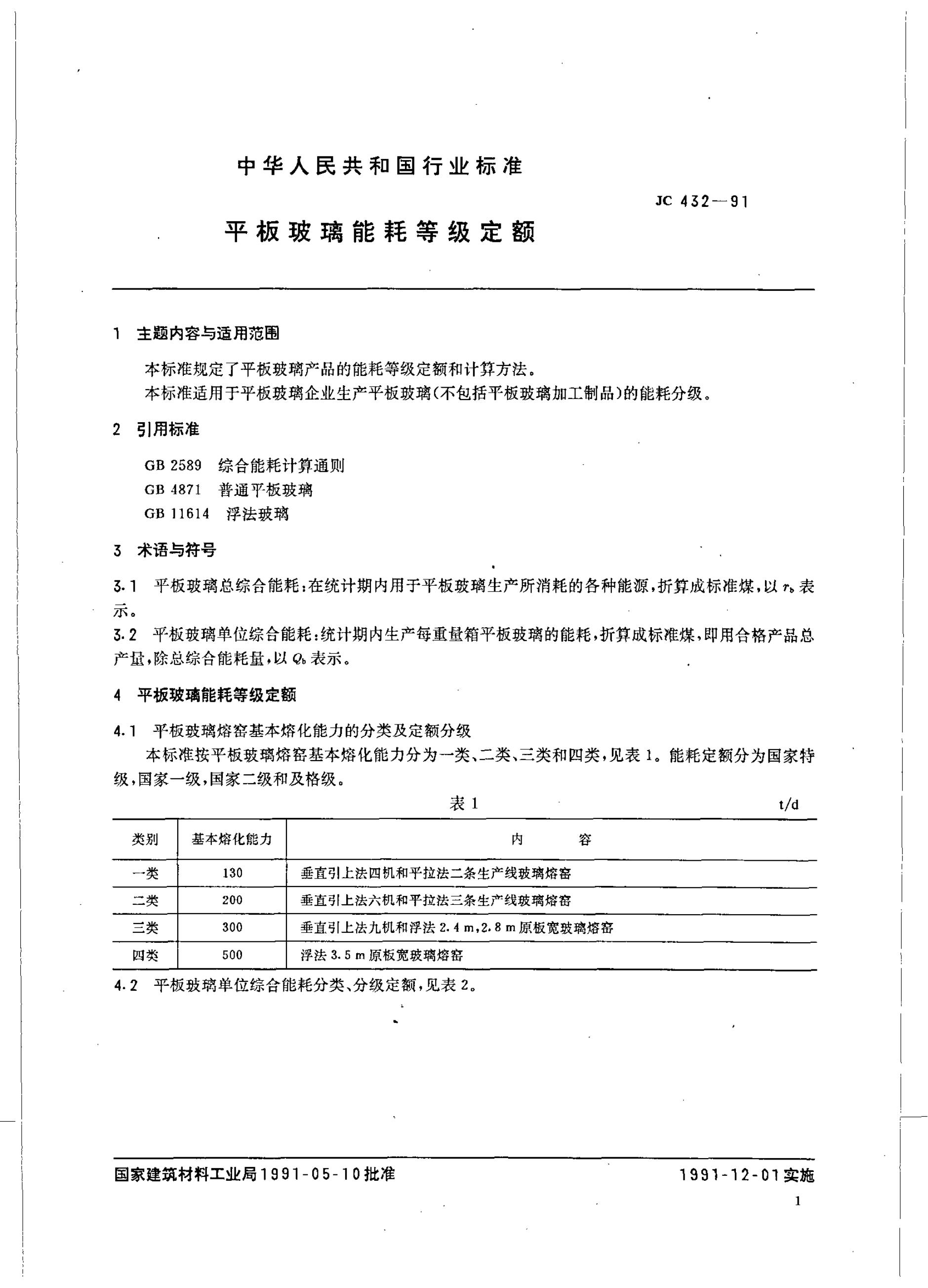 JC 432-1991 平板玻璃能耗等级定额