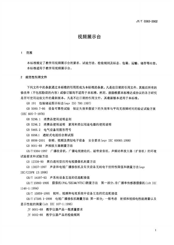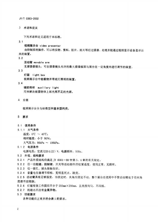 JY/T 0363-2002 视频展示台